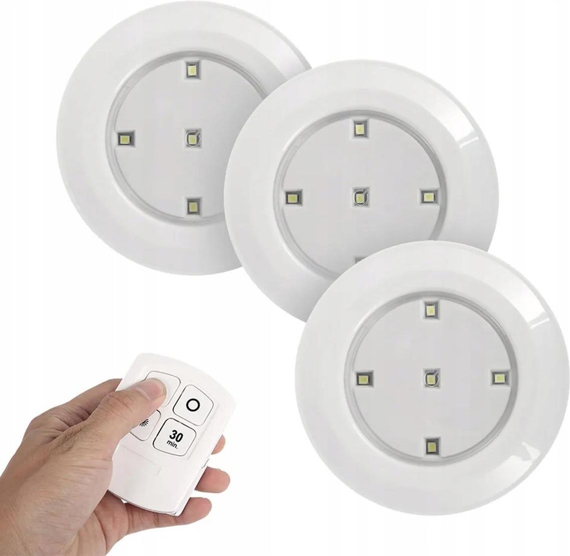 3X Lampka Podszafkowa Led Samoprzylepna Z Czujnikiem Ruchu Na Baterie 4000K 2Xaaa Biała + Pilot Kołaczyce