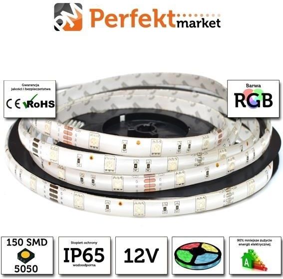 Proszę przy zakupie kierować się naszymi opisami i parametrami produktu, dane z tytułu i katalogu Allegro czasami są błędne. Taśma LED RGB 150SMD5050 5m IP63 - 5m. Napięcie zasilania: 12V DC Klasa szczelności: IP63 Ilość diod w zestawie: 150 Rodzaj diod: SMD5050 Pobór prądu: 7,2W/m, 36W/5m Barwa …