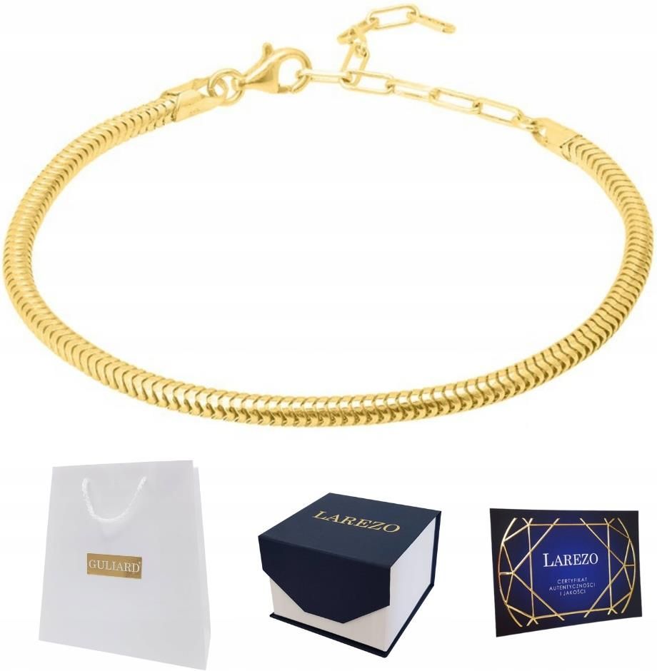 Bransoletka modułowa srebrna do zawieszek 💙 Surowiec: Srebro 💙 Próba: 925 💙 Powłoka: Złoto próby 999 (24-karaty) 💙 Typ: Bransoletka do zawieszek charms, beads 💙 Splot: Wężykowy (żmijka) 💙 Waga: ~6 g 💙 Długość: 18 cm + 3 cm przedłużki 💙 Szerokość: 3 mm 💎 Srebro nie zawiera domieszek niklu co sprawia, że wyrób jest całkowicie antyalergiczny (nie powoduje reakcji alergicznych). 💎 Ręcznie polerowany. 💎 DO ZAMÓWIENIA OTRZYMASZ GRATIS! 💙 Piękne biało-złote pudełeczko z pozłacanym logo do charmsów oraz granatowo-białe z pozłacanym logo do bransoletek. 💙 Certyfikat jakości wystawiony i podpisany przez naszych jubilerów. 💙 Opakowanie fasonowe oraz złote wypełnienie paczki wykonane z ekologicznych produktów. 💙 Poradnik jak dbać o biżuterię. 💎 Dlaczego marka LAREZO? 💙 Polska marka - autorskie projekty oraz własne pracownie jubilerskie oraz galwaniczne zlokalizowane w Małopolsce. 💙 Piękne pudełeczka - nasze pudełeczka na biżuterię produkowane są w 100% w Polsce. Każdy element jest ręcznie składany i klejony z dbałością o każdy szczegół ! 💙 Pokrywanie biżuterii złotem - biżuteria pozłacana pokrywana jest czterema warstwami 24-karatowego złota przez naszych jubilerów w pracowniach galwanicznych. Każda warstwa jest dodatkowo hartowana. Grubość powłoki to ponad 1 mikron ! 💙 Najwyższej jakości srebro antyalergiczne - nie zawiera żadnych domieszek niklu oraz innych szkodliwych metali. 💙 Królewskie kryształy - najwyższej jakości cyrkonie o szlifie diamentowym imitujące prawdziwe diamenty. Czystość: AAAAA 💙 Gwarancja jakości - jakość biżuterii została potwierdzona podczas badania przez Polski Urząd Probierczy. 🎁 NIE MASZ POMYSŁU NA PREZENT??? Imieniny? Urodziny? Walentynki? Dzień kobiet? Spieszymy z pomocą!! Nasze wysokiej jakości produkty zachwycą Twoich bliskich! 💎 ZAPAKUJ NA PREZENT 💙 Usługa dodatkowo płatna w podsumowaniu koszyka. Dzięki temu, możesz wręczyć prezent od razu po otrzymaniu paczki lub nadać paczkę bezpośrednio do osoby, której chcesz zrobić prezent.