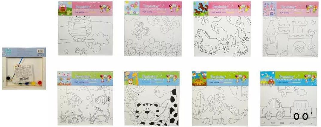 Obrazek do pomalowania dla dzieci. Zestaw zawiera obrazek, pędzelek, 6 kolorów różnych farb. Cena dotyczy jednej sztuki. Zabawka występuje w kilku wzorach. Wzór wybierany losowo.