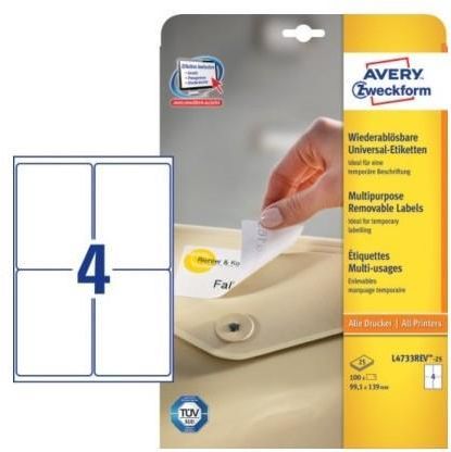 Avery Zweckform Białe etykiety usuwalne 100szt. L4733REV-25 Kolbuszowa