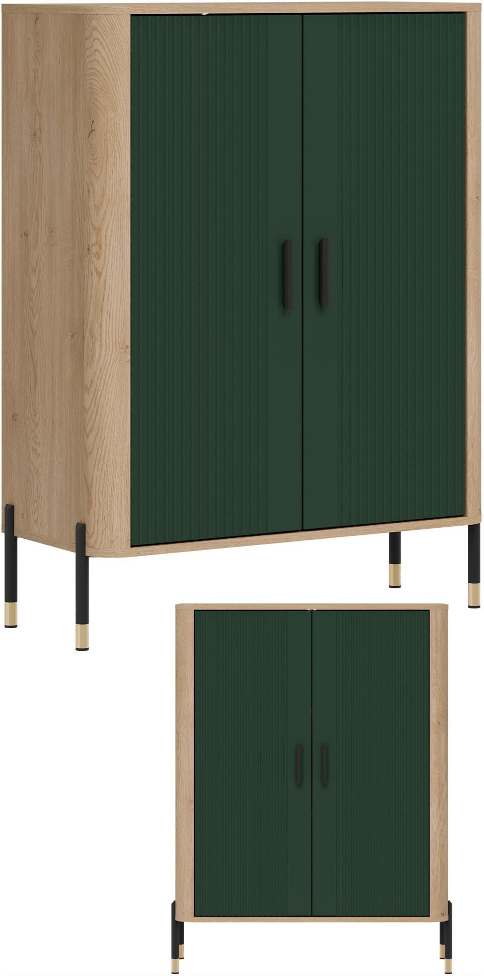 Liveo Meble Szafka Dwudrzwiowa Komoda Regał Zamykany Dąb Zielony Czarny Dante DT11 (DT11DCTZKPL) Kolbuszowa