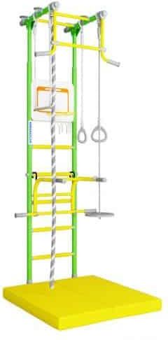 Drabinka do ćwiczeń Kometa 2 Max Drabinka gimnastyczna Kometa-2 Max jest wyposażona w wiele akcesoriów gimnastycznych. Ona jest przeznaczona zarówno dla dzieci jak i osób dorosłych. Zestawy gimnastyczne są opatrzone europejskim certyfikatem bezpieczeństwa, które zasłużyły dzięki swojej wytrzymałej i bezpiecznej konstrukcji, wysokiej jakości materiałom oraz estetycznemu wyglądowi. Stalowe profile konstrukcji drabinki gimnastycznej Kometa osiągają wytrzymałość 200 kg podczas wykonywania testów fabrycznych. ELEMENTY ZESTAWU metalowa drabinka gimnastyczna drążek nieprzesuwny drążek-poręcze 2w1 zawieszany materac 100*100*10 cm kosz do koszykówki huśtawka talerz kółka gimnastyczne lina gimnastyczna huśtawka gimnastyczna (trapez) WAZNE Zestaw przeznaczony dla dzieci od 3 lat i dorosłych Dopuszczalne obciążenie: 100 kg (drabinka i drążek), 50 kg (akcesoria zawieszane) Wysokość zestawu: 232 cm - 280 cm (do 306 сm z dostawką wydłużającą) Montaż: rozporowo Kolorystyka: żółto-jasnozielony Zalecenia producenta: dzieci od 3 do 7 lat powinny ćwiczyć tylko pod nadzorem rodziców Zalecana bezpieczna odległość od ściany zapobiegająca zakleszczeniu głowy dziecka: 25 cm
