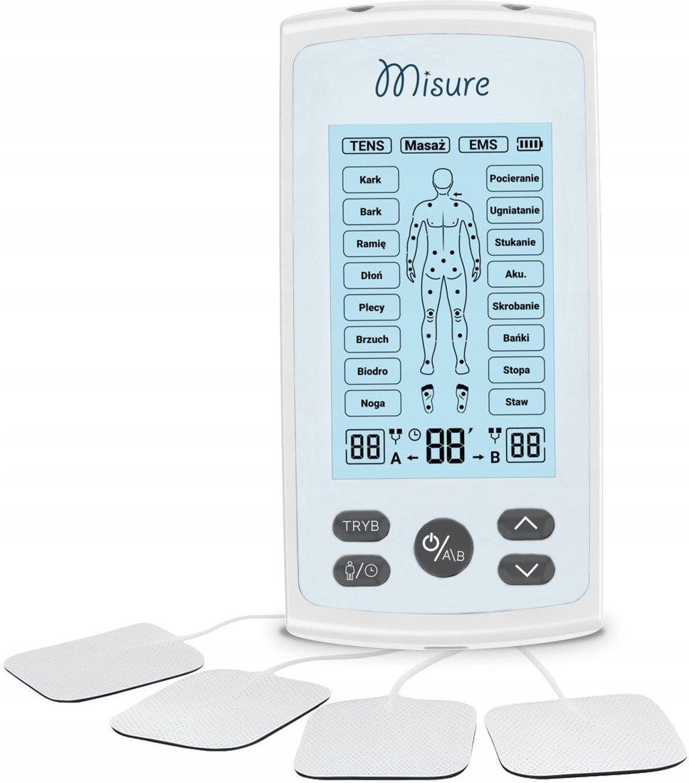 Elektrostymulator MISURE Tens Pro JPD-ES220 to nowoczesny elektrostymulator 3w1, który łączy w sobie funkcje TENS, EMS oraz masażu, zapewniając kompleksową ulgę w bólu, regenerację mięśni oraz głęboki relaks. Urządzenie wykorzystuje impulsy elektryczne, które pomagają blokować sygnały bólowe, pobudzać mięśnie i rozluźniać napięcia, dzięki czemu możesz odzyskać komfort bez stosowania leków.