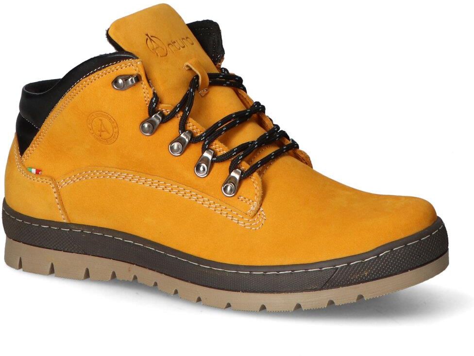 Modne trzewiki marki Arturo:- wykonane zostały z najlepszej jakości skóry naturalnej nubukowej - ocieplane wnętrze zapewnia ciepło podczas użytkowania w chłodne dni - wkładka wewnętrzna wykonana z materiału ocieplającego - podeszwa o grubości 3 cm zapewnia stabilność - sznurowana cholewka ułatwia zakładanie i dopasowanie obuwia - intensywny żółty oraz modny fason zachwycą każdego!