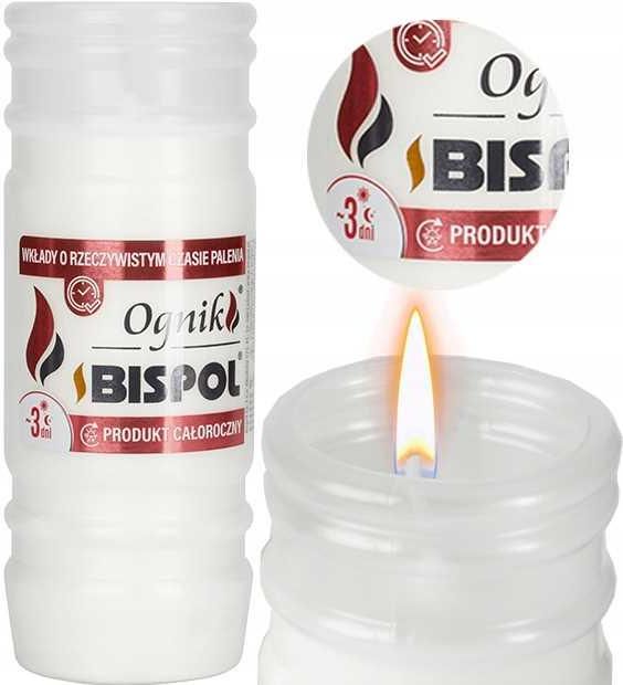 BISPOL - Wkład Zalewany Ognik WP3 - 1 szt. BISPOL - Wkład Zalewany Ognik WP3 - 1 szt. Wkład Zalewany Ognik WP3 Wkład Zalewany Ognik WP3 jest produktem zalewanym, co oznacza, że parafina lub inny materiał palny wlewa się do pojemnika, tworząc jednolitą, stabilną masa, która spala się równomiernie. Dzięki temu, wkłady nie kopcą podczas palenia, co jest szczególnie istotne w miejscach publicznych, gdzie dbałość o czystość i estetykę jest na wysokim poziomie. Produkt charakteryzuje się jasnym i czystym płomieniem, co gwarantuje nie tylko odpowiednią iluminację, ale także wprowadza nastrój godności i spokoju. Wkład spala się równomiernie przez około 3 dni, co eliminuje konieczność częstej wymiany i pozwala na długotrwałe zachowanie pamięci o bliskich bez konieczności codziennej obecności przy grobie. Specyfikacja Kolor: Biały - neutralny i pasujący do różnych rodzajów zniczy i otoczenia. Czas palenia: Około 3 dni - idealne rozwiązanie na długie weekendy lub święta. Waga: 180 g - stabilność i odporność na warunki zewnętrzne. Średnica:Ø5.5 cm - uniwersalny rozmiar, pasujący do standardowych zniczy. Wysokość: 14.5 cm - zapewnia długotrwałe palenie się bez potrzeby częstej wymiany. Zastosowanie produktu Wkład Zalewany Ognik WP3 jest idealny do użytku w różnorodnych zniczach, zarówno tych tradycyjnych, jak i nowoczesnych. Może być używany w trakcie różnych uroczystości pamięciowych, zarówno na cmentarzach, jak i w innych miejscach pamięci. Produkt sprawdzi się także w domowym zaciszu, tworząc atmosferę refleksji i pamięci o zmarłych. Długotrwałe Palenie Wybierając wkład zalewany Ognik WP3 marki BISPOL, decydujesz się na produkt, który łączy w sobie jakość, efektywność i estetykę. Jest to idealne rozwiązanie dla osób poszukujących niezawodnego i długotrwałego źródła światła, które będzie służyć przez wiele dni bez potrzeby interwencji. BISPOL - Wkład Zalewany Ognik WP3 - 1 szt. Wkład Zalewany Ognik WP3 Wkład Zalewany Ognik WP3 jest produktem zalewanym, co oznacza, że parafina lub inny materiał palny wlewa się do pojemnika, tworząc jednolitą, stabilną masa, która spala się równomiernie. Dzięki temu, wkłady nie kopcą podczas palenia, co jest szczególnie istotne w miejscach publicznych, gdzie dbałość o czystość i estetykę jest na wysokim poziomie. Produkt charakteryzuje się jasnym i czystym płomieniem, co gwarantuje nie tylko odpowiednią iluminację, ale także wprowadza nastrój godności i spokoju. Wkład spala się równomiernie przez około 3 dni, co eliminuje konieczność częstej wymiany i pozwala na długotrwałe zachowanie pamięci o bliskich bez konieczności codziennej obecności przy grobie. Specyfikacja Kolor: Biały - neutralny i pasujący do różnych rodzajów zniczy i otoczenia. Czas palenia: Około 3 dni - idealne rozwiązanie na długie weekendy lub święta. Waga: 180 g - stabilność i odporność na warunki zewnętrzne. Średnica:Ø5.5 cm - uniwersalny rozmiar, pasujący do standardowych zniczy. Wysokość: 14.5 cm - zapewnia długotrwałe palenie się bez potrzeby częstej wymiany. Zastosowanie produktu Wkład Zalewany Ognik WP3 jest idealny do użytku w różnorodnych zniczach, zarówno tych tradycyjnych, jak i nowoczesnych. Może być używany w trakcie różnych uroczystości pamięciowych, zarówno na cmentarzach, jak i w innych miejscach pamięci. Produkt sprawdzi się także w domowym zaciszu, tworząc atmosferę refleksji i pamięci o zmarłych. Długotrwałe Palenie Wybierając wkład zalewany Ognik WP3 marki BISPOL, decydujesz się na produkt, który łączy w sobie jakość, efektywność i estetykę. Jest to idealne rozwiązanie dla osób poszukujących niezawodnego i długotrwałego źródła światła, które będzie służyć przez wiele dni bez potrzeby interwencji.
