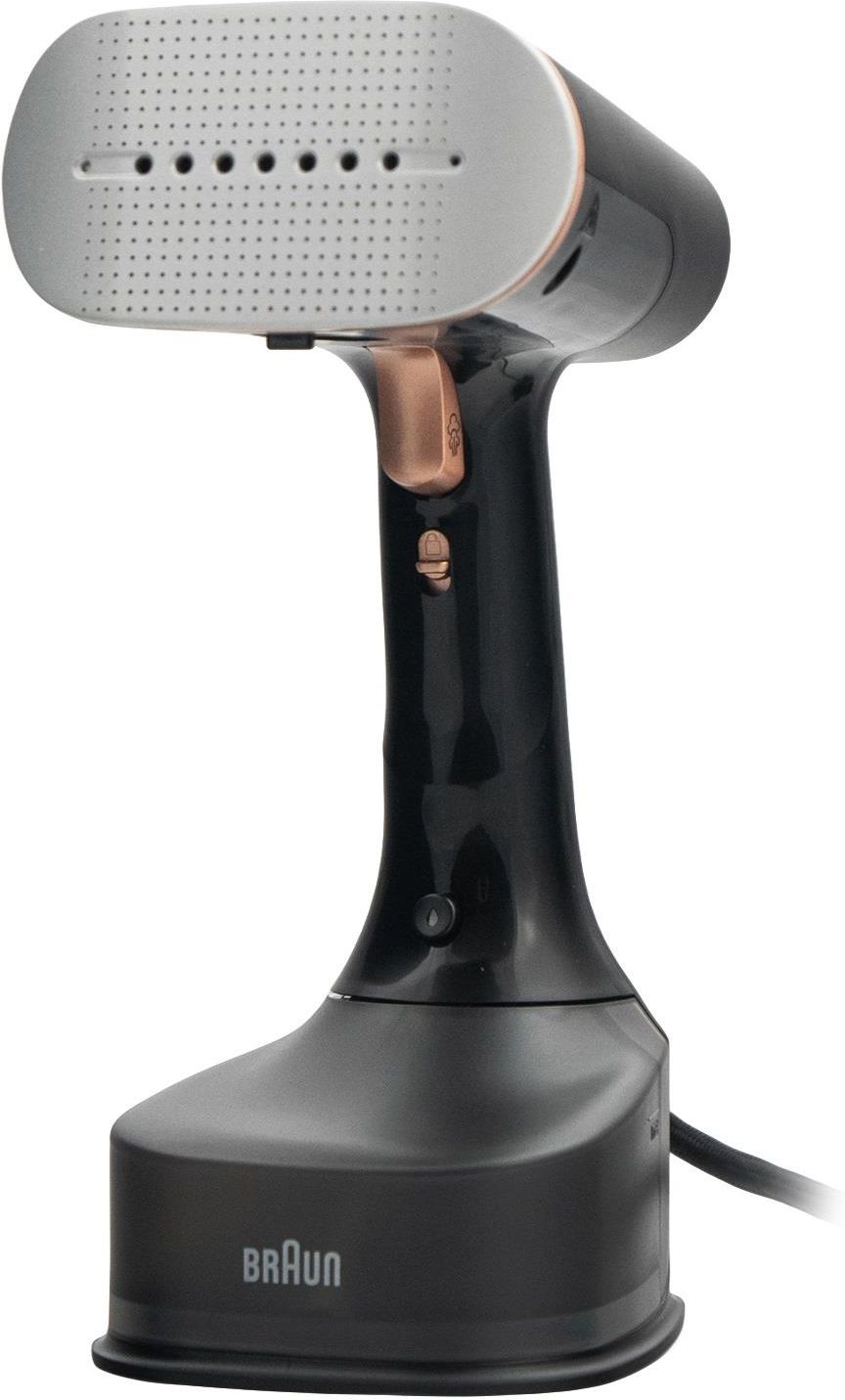 Parownica do ubrań Parownica do ubrań QuickStyle 7 GS 7077, czarno-miedziana QuickStyle 7 Opis produktu Doskonałe rezultaty w krótkim czasie: parownica QuickStyle 7 z wydajną technologią FastSteam usuwa zagniecenia szybko i skutecznie dzięki mocy 1600 W i stałemu wyrzutowi pary do 35 g/min. Podgrzewana stopa pozwala uzyskać jeszcze szybsze rezultaty – odświeżenie stroju zajmie Ci mniej niż minutę*. Nowy system ActiClean Easy pozwala szybkie i łatwe czyszczenie, zwiększając wytrzymałość. Technologia iCare chroni ubrania przed przypaleniem lub uszkodzeniem podczas prasowania.  * testowano na koszulce bawełnianej w rozmiarze M Najważniejsze cechy Doskonałe rezultaty prasowania O 55% większa moc pary*. Wyższa wydajność:1600 W mocy i do 35 g/min ciągłego strumienia pary pozwala na szybkie i skuteczne usuwanie zagnieceń. *w porównaniu z Braun GS5011PU System ActiClean Easy Szybkie i łatwe czyszczenie w kilka sekund. Technologia ta chroni parownicę przed kamieniem i wydłuża jej żywotność. Para pozioma i pionowa Wygodne prasowanie w dowolnej pozycji – ubrania mogą wisieć na wieszaku lub leżeć na łóżku czy stole – nie potrzebujesz deski do prasowania. Cechy charakterystyczne System ActiClean Easy Technologia odkamieniania Braun umożliwia szybkie i łatwe czyszczenie w kilka sekund. Technologia ta chroni parownicę przed kamieniem i wydłuża jej żywotność. Technologia FastSteam Szybkie i łatwe usuwanie zagnieceń dzięki silnemu strumieniowi pary oraz maksymalnemu wykorzystaniu wody. Pierwsza na świecie technologia Dual FreeGlide 3D Wyjątkowe zakrzywienie stopy z obu stron umożliwia manewrowanie w zakresie 360°. Pokonuje wszelkie przeszkody, takie jak guziki i kieszenie, bez zatrzymania. Technologia Smart iCare – do wszystkich rodzajów tkanin Technologia Smart iCare chroni ubrania, zapewniając bezpieczną temperaturę. Szybsze i prostsze prasowanie parowe. Podgrzewana stopa Odświeżenie stroju w niecałą minutę*. Podgrzewaną stopę można przyłożyć bezpośrednio do ubrań, aby jeszcze skuteczniej usuwać zagniecenia. *testowano na koszulce bawełnianej w rozmiarze M Para pozioma i pionowa Szybkie usuwanie zagnieceń w poziomie i w pionie. Wystarczy powiesić ubrania na wieszaku, położyć je na łóżku lub stole. Szybkie nagrzewanie Wyszykujesz się jeszcze szybciej i łatwiej – wystarczy podłączyć parownicę do zasilania, a QuickStyle 7 będzie gotowa do pracy w zaledwie 35 sekund. Kompaktowa i lekka Ergonomiczna konstrukcja naszych lekkich parownic ręcznych pozwala łatwo i wygodnie prasować w dowolnej pozycji. Wygodne przechowywanie dzięki kompaktowej konstrukcji. Nie potrzeba deski do prasowania Ciesz się szybkim usuwaniem zagnieceń bez konieczności rozkładania deski do prasowania. Doskonały wygląd w mgnieniu oka – wystarczy wyprasować ubrania w pionie lub leżące na łóżku. Bardzo długi przewód zasilający Bardzo długi,3-metrowy kabel ułatwia manewrowanie. Większa swoboda ruchów pozwala łatwiej sięgnąć do takich miejsc, jak zasłony, sofy i meble dla zwierząt. Blokada ciągłego strumienia pary Sprytna blokada pary gwarantuje maksimum wygody i łatwość użytkowania. Jedno kliknięcie pozwala uzyskać stabilny,ciągły strumień pary bez konieczności trzymania spustu. Funkcja dezynfekcji Eliminuje w ciągu kilku sekund do 99,99 % bakterii i wirusów z ubrań oraz tekstyliów domowych*. Wystarczy użyć funkcji pary i cieszyć się czystym otoczeniem. * Niezależne badanie laboratoryjne. Maksymalne ustawienie temperatury,3 opcje prasowania z unikalnym wykończeniem stopy w kontakcie z tkaniną bawełnianą (0,5 cm/s) Dane techniczne Specyfikacja Funkcja auto-off: Yes Kolor: Czarno-miedziany Stały wyrzut pary: 35 g/min Pojemność: 250ml Moc w watach (W): 1600 Waga: 1.244 Funkcja auto-off: Yes Materiał: Metal and Plastic Type of descaling method: System ActiClean Easy