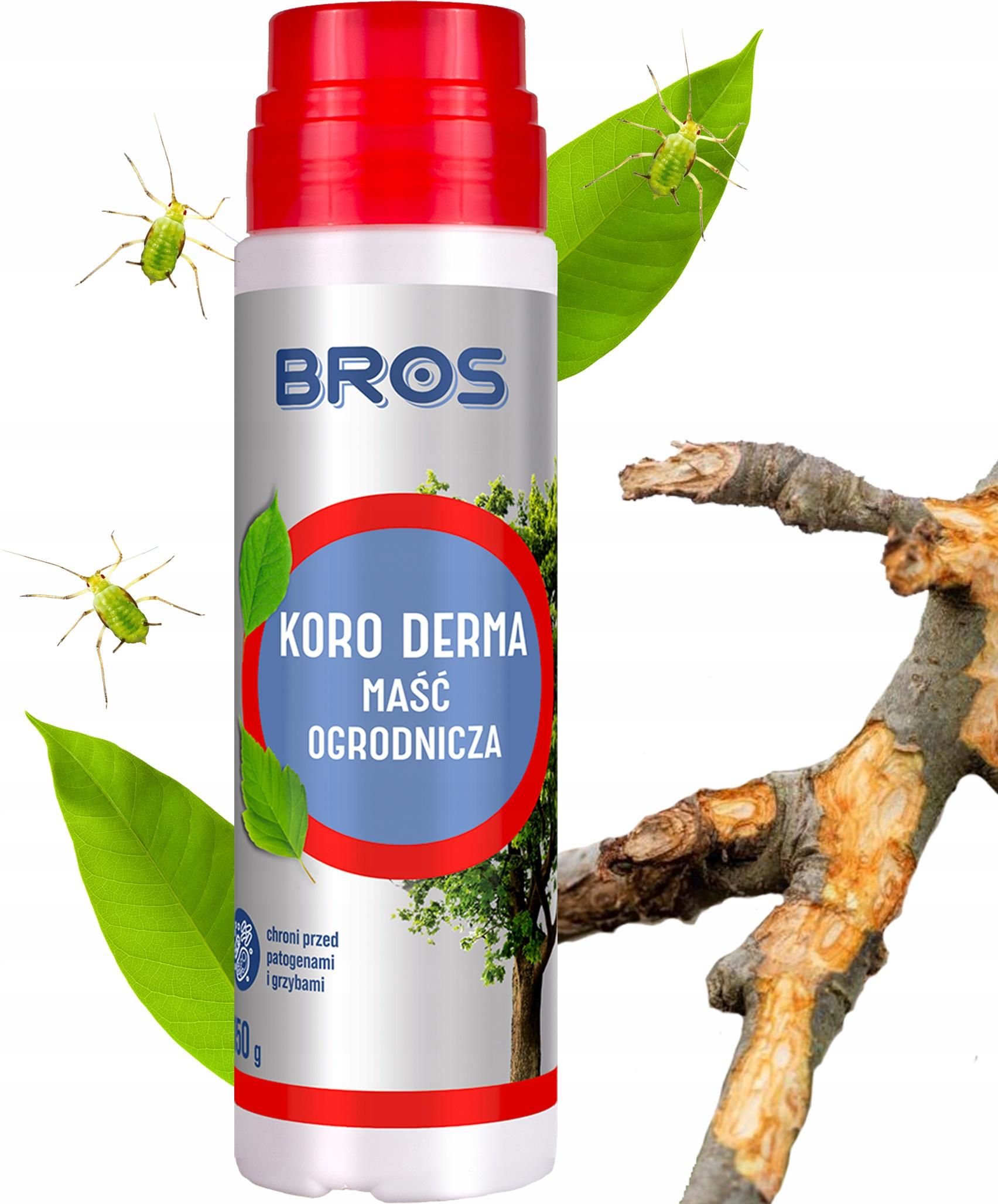 Koro-Derma maść ogrodnicza w butelce z aplikatorem 150g Koro-Derma maść ogrodnicza w butelce z aplikatorem 150g Koro-Derma to specjalistyczna maść ogrodnicza przeznaczona do zabezpieczania ran powstałych podczas szczepień, cięć pielęgnacyjnych, pęknięć mrozowych, otarć czy uszkodzeń spowodowanych przez dzikie zwierzęta. Tworzy trwałą, elastyczną powłokę odporną na niekorzystne warunki atmosferyczne. Specyfikacja Rodzaj produktu: Maść ogrodnicza Pojemność: 150g Forma: Maść Zastosowanie: Do ran po cięciu, szczepieniu i uszkodzeniach mechanicznych Opakowanie: Butelka z aplikatorem Sposób użycia Przed użyciem wstrząśnij butelką. Nałóż maść na oczyszczoną ranę oraz około 2 cm wokół niej. Stosuj przy temperaturze powyżej +3°C. Unikaj aplikacji podczas deszczu. Czy Koro-Derma nadaje się do wszystkich gatunków drzew? Tak, maść można stosować na drzewach owocowych, liściastych i iglastych. Jak długo utrzymuje się warstwa ochronna? Po zaschnięciu powłoka pozostaje trwała przez wiele tygodni, nawet w trudnych warunkach pogodowych. Czy produkt jest bezpieczny dla środowiska? Tak, preparat nie zawiera szkodliwych substancji i jest bezpieczny dla roślin oraz otoczenia. Kiedy najlepiej stosować maść ogrodniczą? Najlepiej bezpośrednio po cięciu, szczepieniu lub zauważeniu uszkodzeń kory, niezależnie od pory roku (z wyjątkiem mrozów). Najważniejsze zalety Skuteczna ochrona przed patogenami – tworzy trwałą barierę chroniącą przed grzybami i bakteriami. Przyspiesza gojenie ran – wspomaga naturalny proces regeneracji roślin. Odporna na warunki atmosferyczne – elastyczna powłoka nie pęka i nie spływa pod wpływem deszczu czy mrozu. Łatwa aplikacja – butelka z pędzelkiem umożliwia precyzyjne i równomierne nałożenie maści. Uniwersalne zastosowanie – idealna do drzew owocowych, krzewów ozdobnych oraz innych roślin ogrodowych