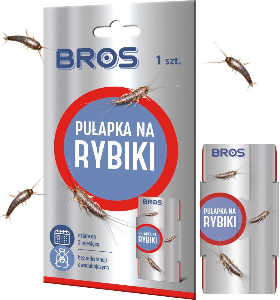 {desc/100/} BROS - pułapka na rybiki {desc/50/} {desc/50/} BROS – Pułapka na rybiki Pułapka na rybiki marki BROS to skuteczne narzędzie do monitorowania obecności rybików cukrowych (srebrzyków). Dzięki zastosowaniu lepnej powierzchni oraz atrakcyjnej pokarmowo przynęty skutecznie przyciąga i odławia owady, nie zawierając przy tym żadnych chemicznych substancji owadobójczych. Skuteczne rozwiązanie na rybiki cukrowe {desc/50/} Specyfikacja Substancje owadobójcze: Brak Przynęta: Pokarmowa, wabiąca rybiki Czas działania: Do 3 miesięcy Zastosowanie: Pomieszczenia wilgotne i ciemne (łazienki, toalety, kuchnie) Bezpieczeństwo: Przyjazna dla ludzi i zwierząt {desc/50/} {desc/50/} {desc/50/} Instrukcja stosowania Rozłożenie pułapki Otworzyć opakowanie i rozłożyć pułapkę. Zdjąć papier zabezpieczający klej. Montaż i ustawienie Złożyć pułapkę zgodnie z ilustracją na opakowaniu. Ustawić w miejscu występowania rybików, np. w łazience, kuchni, toalecie lub innych wilgotnych i ciemnych pomieszczeniach. Pułapkę najlepiej umieścić na podłodze przy ścianie. Eksploatacja i wymiana Nie przestawiać pułapki przez pierwsze 3 dni, aby osiągnęła optymalną skuteczność. Po zapełnieniu owadami lub zakurzeniu wymienić na nową. {desc/50/} Cechy produktu Długotrwałe działanie – jedna pułapka działa do 3 miesięcy. Bez substancji owadobójczych – w pełni bezpieczna dla domowników oraz zwierząt domowych. Dyskretna forma – złapane owady pozostają niewidoczne. Łatwa w użyciu – szybki montaż i prosta obsługa. Optymalna skuteczność – działa najlepiej po około 3 dniach od rozstawienia. {desc/50/} {desc/50/} {desc/50/} Dlaczego warto wybrać pułapkę BROS? Naturalna i bezpieczna metoda zwalczania rybików cukrowych. Łatwa i szybka aplikacja bez potrzeby używania środków chemicznych. Długi czas działania zapewniający skuteczność przez wiele tygodni. Dyskretna forma, dzięki której owady są niewidoczne po złapaniu. Jeśli masz problem z rybikami cukrowymi w swoim domu, BROS – Pułapka na rybiki to proste, bezpieczne i skuteczne rozwiązanie! {desc/50/} {desc/50/}
