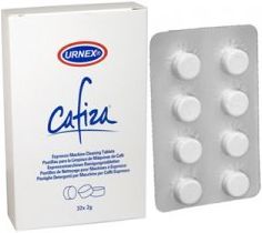 Urnex Cafiza E31 - Tabletki do czyszczenia ekspresów - 32 sztuki Tabletki do czyszczenia automatycznych ekspresów do kawy, zarówno komercyjnych, jak i domowych. Zalecane do konserwacji ekspresów marek: Jura, Dr.Coffee, Nivona, Saeco, Franke, La Cimbali, Bremer, Krups, Bosch, Carimali i innych. Opakowanie: 32 sztuki tabletek 2-gramowych. Tabletki o średnicy 15mm.