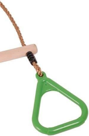 TRAPEZ DREWNIANY GIMNASTYCZNY DRĄŻEK Z TRÓJKĄTNYMI OBRĘCZAMI HUŚTAWKA wykonany z drewna możliwość regulacji długości liny łatwy montaż oczka i ósemki z galwanizowanej stali odporny na zmienne warunki atmosferyczne KOLOR: LIMONKA Specyfikacja materiał wykonania: drewno, tworzywo sztuczne liny PP o regulowanej długości do 130 cm do użytku wewnętrznego i zewnętrznego gwarancja bezpiecznej zabawy