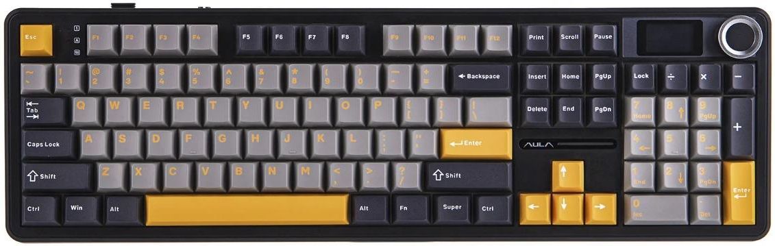 Klawiatura mechaniczna AULA F108 Pro czarna Pełnowymiarowa klawiatura z tri-trybowym połączeniem AULA F108 Pro to pełnowymiarowa klawiatura mechaniczna wyposażona w 108 klawiszy, zapewniająca kompletną funkcjonalność i wygodę użytkowania w każdym scenariuszu. Dzięki trzem trybom połączenia – przewodowemu USB-C, bezprzewodowemu 2,4 GHz oraz Bluetooth 5.0 – możesz błyskawicznie przełączać się między urządzeniami, zachowując stabilność sygnału i niskie opóźnienia. To idealne rozwiązanie zarówno dla graczy, jak i profesjonalistów ceniących elastyczność i niezawodność. Gasket mount i pięciowarstwowe tłumienie dźwięku Konstrukcja klawiatury mechanicznej AULA F108 Pro wykorzystuje system gasket mount oraz pięć warstw tłumiących dźwięk, w tym pianki IXPE i PORON oraz silikonowe uszczelnienia redukujące drgania i rezonans. Dzięki temu każde naciśnięcie klawisza jest miękkie, sprężyste i komfortowe, a praca klawiatury pozostaje cicha i przyjemna. Taka budowa sprawia, że model F108 Pro świetnie nadaje się zarówno do długiego pisania, jak i intensywnego grania bez zmęczenia dłoni czy hałasu w otoczeniu. Hot-swappable PCB i wysokiej klasy komponenty Klawiatura mechaniczna AULA F108 Pro posiada pełne wsparcie dla hot-swappable PCB, co oznacza, że można wymieniać przełączniki bez lutowania i eksperymentować z różnymi typami switchy zgodnymi ze standardem 3 lub 5 pinów. AULA F108 Pro wykorzystuje też elastyczną płytę PC plate z precyzyjnymi cięciami flex cut, które wpływają na lepszy skok i responsywność. Całość dopełniają klawisze PBT wykonane metodą double-shot, odporne na ścieranie i pożółknięcie, gwarantujące długowieczność sprzętu premium. RGB podświetlenie, pokrętło i bateria 8000 mAh Klawiatura mechaniczna AULA F108 Pro wyróżnia się pełnym podświetleniem RGB z możliwością konfiguracji 16,8 miliona kolorów i wieloma trybami efektów świetlnych, które można zmieniać skrótami klawiszowymi lub przy pomocy oprogramowania. Dodatkowo pokrętło multimedialne umożliwia szybką regulację głośności czy jasności podświetlenia. Za zasilanie odpowiada akumulator 8000 mAh oferujący długą pracę bez ładowania, co czyni klawiaturę idealnym towarzyszem zarówno do codziennej pracy, jak i intensywnych sesji gamingowych.