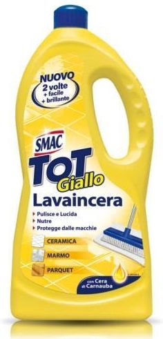 SMAC Tot Lavaincera parkiety, marmury, glazura (opakowanie 100ml) Smac Tot Giallo Lavaincera jest specyficznym detergentem do czyszczenia i polerowania wszystkich podłóg z ceramiki, marmuru, terakoty, parkietu, granitu, i porcelany bez użycia polerki. Nowa formuła Smac Tot Giallo Lavaincera, bogata w wosk Carnauba, pozostawia na powierzchni specjalną barierę ochronną, która chroni je przed plamami, zadrapaniami i wilgocią bez pozostawiania smug, zapewniając trwały z czasem połysk. Smac Tot Giallo Lavaincera czyści, poleruje, odżywia i chroni jednym gestem. * używaj tylko na lakierowanym parkiecie