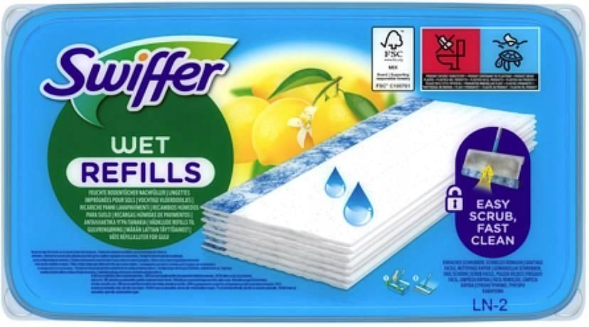 Swiffer Wet Refills - Wilgotne ściereczki do podłóg cytrynowe 10 szt. Swiffer Swiffer Wet Refills – Wilgotne Ściereczki do Podłóg Cytrynowe – 10 szt. Skutecznie usuwają brud, kurz i tłuste plamy – zapewniając natychmiastową świeżość i czystość bez konieczności używania wiadra z wodą. Główne zalety, które przekonują Gotowe do użycia – wystarczy założyć na mopa Swiffer i rozpocząć sprzątanie. Cytrynowy zapach – przyjemna świeżość po każdym użyciu. Usuwają nawet tłuste zabrudzenia – idealne do kuchni, korytarza i łazienki. Bez smug i zacieków – czysta, lśniąca podłoga w kilka chwil. Pasują do wszystkich mopów Swiffer WetJet i Sweeper. Gdzie najlepiej stosować? W kuchni – do podłóg z paneli, płytek i gresu z tłustymi plamami. W łazience – higieniczne czyszczenie bez rozmazywania brudu. W korytarzu i przedpokoju – szybkie usunięcie błota i śladów butów. W salonie i sypialni – bezpieczne dla drewnianych i laminowanych powierzchni. Do codziennego, szybkiego sprzątania – idealne w każdej sytuacji. Specyfikacja techniczna • Zawartość opakowania: 10 szt. wilgotnych ściereczek • Zapach: Świeża cytryna • Zastosowanie: Do mopów Swiffer • Powierzchnie: Panele, płytki, gres, parkiet, drewno lakierowane • Forma: Gotowe do użycia, nasączone ściereczki • EAN: [do uzupełnienia] Najważniejsze składniki aktywne i cechy użytkowe Płyn czyszczący o działaniu odtłuszczającym – eliminuje tłuszcz i osady. Bezpieczne dla większości powierzchni podłogowych – nie zawierają wybielaczy ani alkoholu. Delikatna, ale skuteczna struktura – wchłania brud zamiast go rozcierać. Sposób użycia • Wyjmij jedną ściereczkę z opakowania i zamocuj ją do mopa Swiffer. • Przetrzyj wybraną powierzchnię, kierując się z jednego końca pomieszczenia do drugiego. • Zużytą ściereczkę wyrzuć po sprzątaniu – bez brudnej wody, bez wyżymania! • Nie stosować na surowym, nieuszczelnionym drewnie. Swiffer Wet Refills Lemon 10 szt. – błyskawiczna czystość i świeży zapach bez wysiłku. Doskonałe rozwiązanie dla nowoczesnego domu!