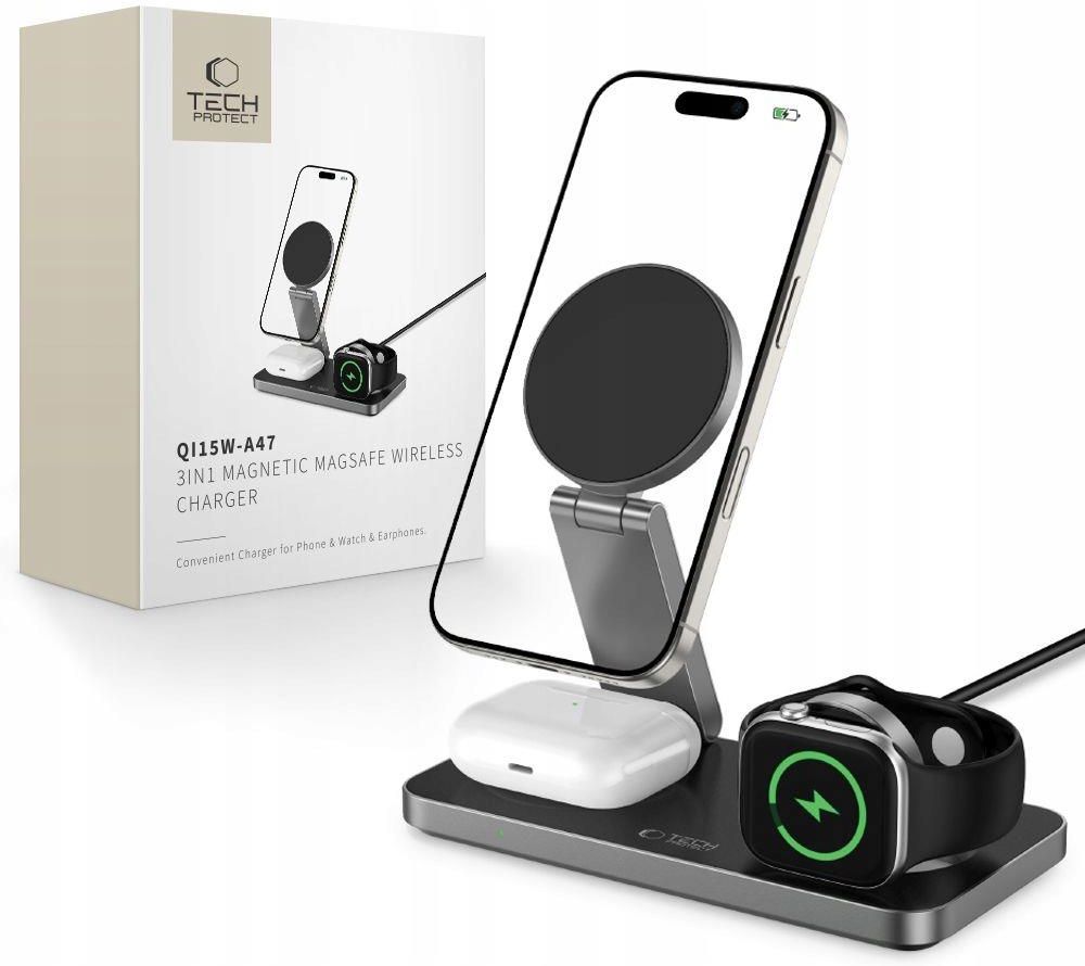 Tech Protect Qi15W A47 3In1 Magnetic Magsafe Wireless Charger Black Kołobrzeg