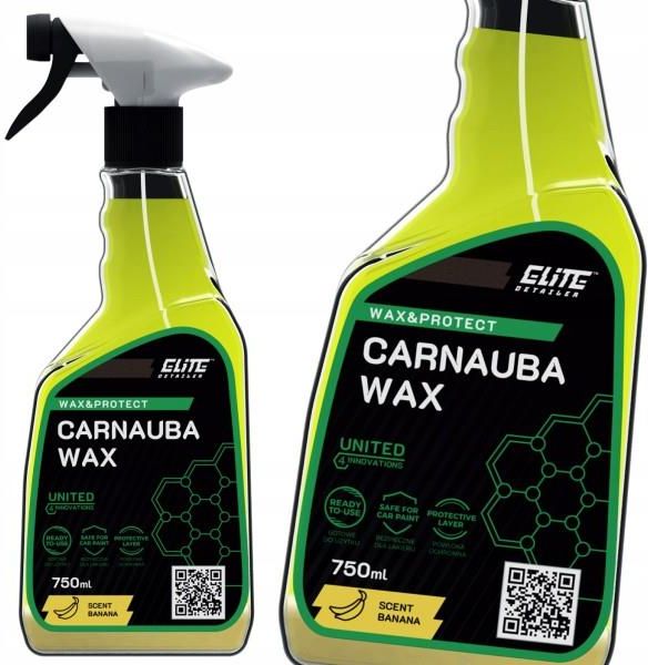 ELITE DETAILER - CARNAUBA WAX 750mlPŁYNNY WOSKWysoce zaawansowany technologicznie, dwufazowy płynny wosk z dużą zawartością brazylijskiej carnauby. Nadaje lakierowi połysk i głębie koloru. Trwale zabezpiecza przed szkodliwymi warunkami atmosferycznymi. Dzięki starannie wyselekcjonowanym składnikom, polerowanie i docieranie produktu jest proste i szybkie. Produkt nie pozostawia smug.DOSTĘPNE POJEMNOŚCI: 0,75Lzapach: bananSposób aplikacji: butelka z atomizeremTyp: gotowy do użyciaKategoria: ZABEZPIECZENIEJAK UŻYWAĆ?Przed zastosowaniem wstrząśnijNanieś na suchą i czystą powierzchnię jednego elementu za pomocą opryskiwacza lub bezpośrednio na mikrofibręWypracuj produkt miękką mikrofibrąPowyższy produkt powstał według idei UNITED 4 INNOVATIONS, która zakładała współpracę profesjonalnych salonów detailingowych z naszym działem produktów.W trakcie trwających ponad rok wspólnych prac w laboratorium spędziliśmy setki godzin na testowaniu produktów, aby stworzyć preparaty, które zadowolą nawet najbardziej wymagających odbiorców. Do stworzenia innowacyjnej serii chemii i kosmetyków samochodowych używamy surowców i komponentów największych, renomowanych producentów na świecie.Każdy z produktów, który oddajemy w Państwa ręce, jest owocem tej wyjątkowej współpracy ekspertów, wieloletnich praktyków i prawdziwych pasjonatów detailingu.