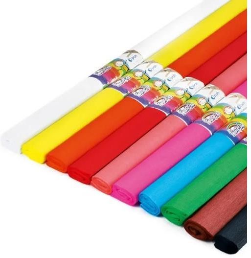 Bibuła marszczona FIORELLO 10 szt. mix kolorów – wymiary arkusza: 200×50 cm – marszczenie: 60% – spełnia normy dot. zawartości nonylphenolu – opak. 10 rolek