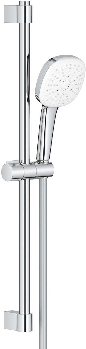 Grohe - Tempesta Cube 110 27786003 Zestawy prysznicowe to istotny element wyposażenia łazienki, który znacząco wpływa na komfort i jakość codziennych rytuałów higienicznych. Wybór odpowiedniego modelu może przynieść relaks i przyjemność podczas kąpieli. Przykładem innowacyjnego rozwiązania jest zestaw prysznicowy Grohe Tempesta Cube 110, który łączy nowoczesny design i funkcjonalność, oferując użytkownikom wyjątkowe doznania. Wymiary i regulacja Zestaw prysznicowy cechuje się optymalnymi wymiarami, które gwarantują wygodę użytkowania. Drążek prysznicowy o długości 600 mm oraz wąż prysznicowy o długości 1750 mm zapewniają swobodę ruchu pod prysznicem. Użytkownicy mogą dostosować wysokość drążka oraz kąt deszczownicy, co sprawia, że zestaw doskonale przystosowuje się do indywidualnych potrzeb, co jest istotne w gospodarstwach domowych z różnymi preferencjami. Materiały wykonania Model Grohe Tempesta Cube 110 wykonany jest z wysokiej jakości materiałów, takich jak stal nierdzewna i mosiądz, które są pokryte eleganckim chromem. Materiały te zapewniają odporność na korozję oraz ułatwiają utrzymanie zestawu w czystości, co wpływa na jego trwałość i estetykę. Chromowana powierzchnia nie tylko wygląda atrakcyjnie, ale również jest odporna na zarysowania i osady, co pozwala na długotrwałe użytkowanie. Rodzaj montażu i kompatybilność Zestaw prysznicowy jest montowany natynkowo, co sprawia, że jego instalacja jest szybka i bezproblemowa. Dzięki uniwersalnemu systemowi mocowania, model jest kompatybilny z większością istniejących instalacji wodnych, co ułatwia jego wprowadzenie do każdej łazienki. Wykończenie Dostępny w eleganckim kolorze chrom, zestaw prysznicowy doskonale komponuje się z nowoczesnymi oraz klasycznymi aranżacjami wnętrz. Jego blask przyciąga wzrok i nadaje wnętrzu charakteru, co sprawia, że jest atrakcyjnym wyborem dla osób ceniących sobie styl i jakość. Funkcje dodatkowe Grohe Tempesta Cube 110 oferuje szereg innowacyjnych funkcji, które zwiększają komfort użytkowania. Oto kluczowe zalety: GROHE SmartSwitch – intuicyjny przełącznik do wyboru preferowanego strumienia wody, GROHE DreamSpray – technologia zapewniająca równomierny strumień, GROHE Long-Life – trwała powłoka dla długotrwałego użytkowania, GROHE FastFixation – regulowana wysokość mocowania drążka, SpeedClean – system zapobiegający osadzaniu się wapnia, Inner WaterGuide – wewnętrzna izolacja ochronna przed nagrzewaniem, ShockProof – silikonowy pierścień chroniący słuchawkę przed uszkodzeniami. Rodzaje strumienia wody Zestaw prysznicowy zapewnia różnorodność w doborze strumienia wody, w tym deszczowy, masaży czy strumień normalny. Umożliwia to użytkownikom wybór najbardziej odpowiedniego trybu natrysku, dostosowanego do ich potrzeb i preferencji. Typ zestawu prysznicowego Model Grohe Tempesta Cube 110 należy do kategorii zestawów natynkowych, które łączą deszczownicę oraz słuchawkę prysznicową. Dzięki temu użytkownicy zyskują wszechstronność i komfort, co sprawia, że zestaw jest interesującą propozycją dla osób poszukujących wysokiej jakości produktów do swojej łazienki.