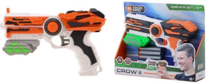 TACK PRO CROW II Wymiary opakowania 20,5 x 25 x 6,5 cmRzutek: 6Wiek : 6+ PRZETESTUJ SWOJĄ DROGĘ DO ZWYCIĘSTWA DZIĘKI TACK PRO® CROW II CROW II JEST STANDARDOWO WYPOSAŻONY W 6 RZUTEK I STRZELA Z ODLEGŁOŚCI DO 50 STÓP (15 M)! ŚLEDŹ NAS NA YOUTUBE I BĄDŹ NA BIEŻĄCO: …