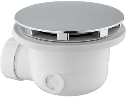 Syfon brodzikowy z syfonem, przeznaczony do brodzika z otworem 90 mm, z pokrywą o średnicy 120 mm, z odpływem o średnicy 40/50 mm.