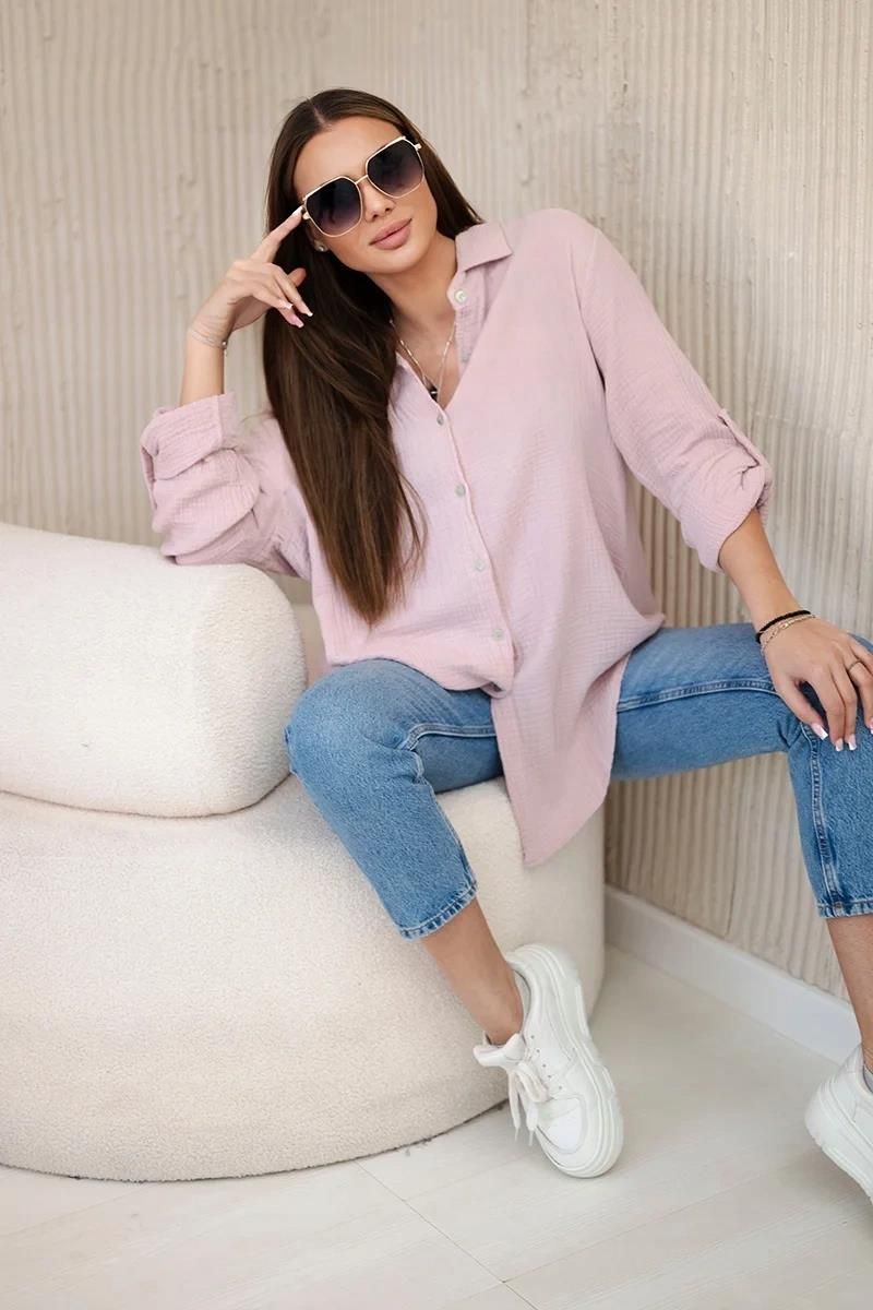 Koszula bawełniana muślinowa oversize ciemny pudrowy róż Koluszki