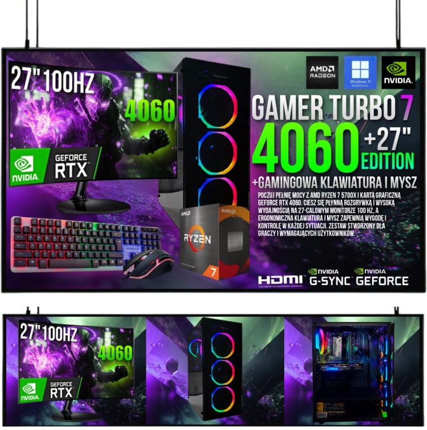 ZESTAW GAMINGOWY Ryzen 7 5700X 32GB RTX 4060 8GB +Wi-Fi +WIN11 +MONITOR 27 Koluszki