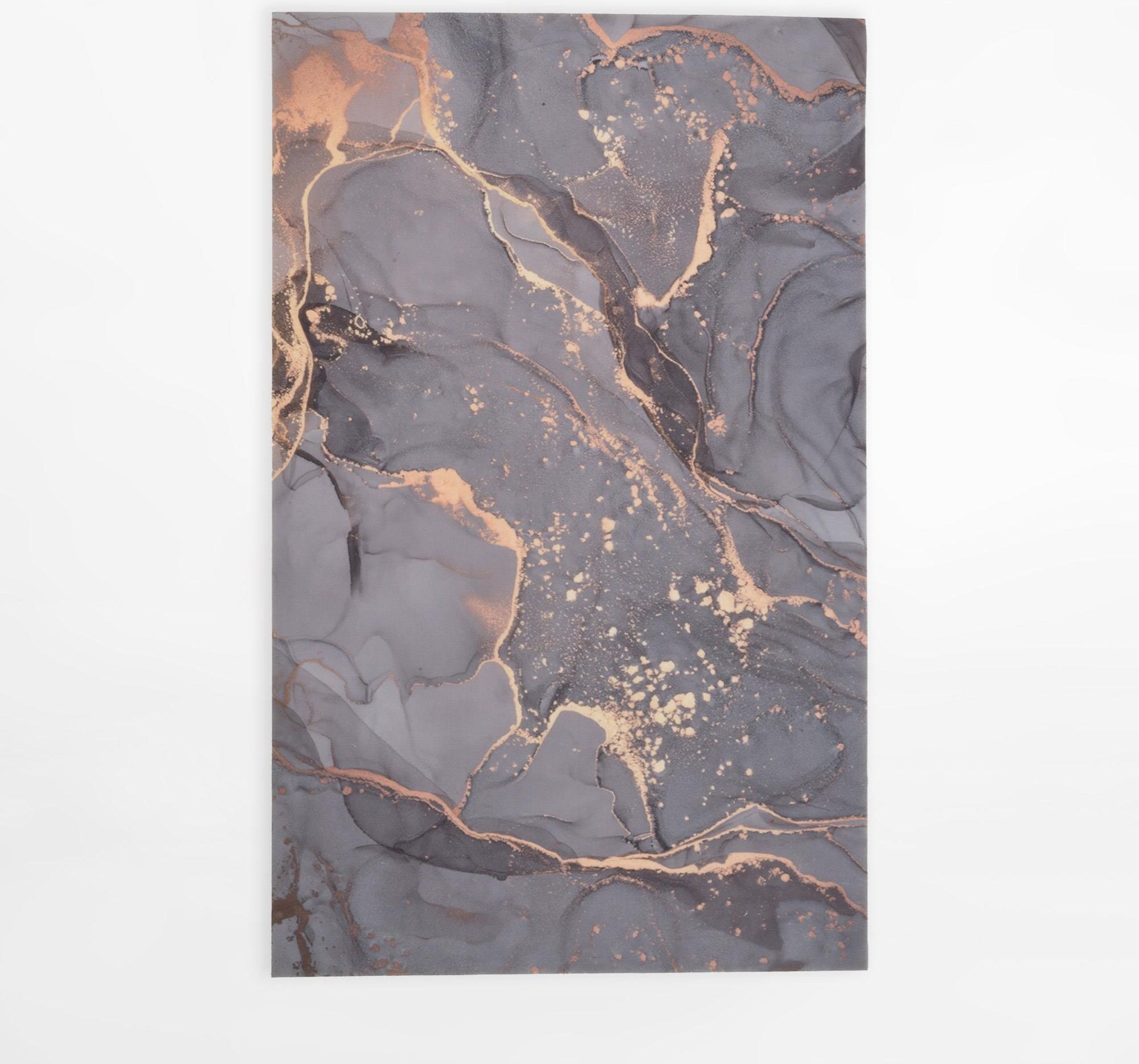 Pozwól sobie na trochę abstrakcji w łazience. Mata łazienkowa tworzy intrygujący wzór, który przypomina efekt płynnego metalu. Jasno- i ciemnoszare odcienie tworzą świetny duet ze złotymi fragmentami maty. Wymiary 50x80 cm są idealne, jeśli potrzebujesz praktycznej i niewielkiej dekoracji do łazienki. W składzie znajdziesz 15% poliestru i 85% polichlorku winylu. Mata jest odporna na wilgoć i łatwo utrzymać ją w czystości.