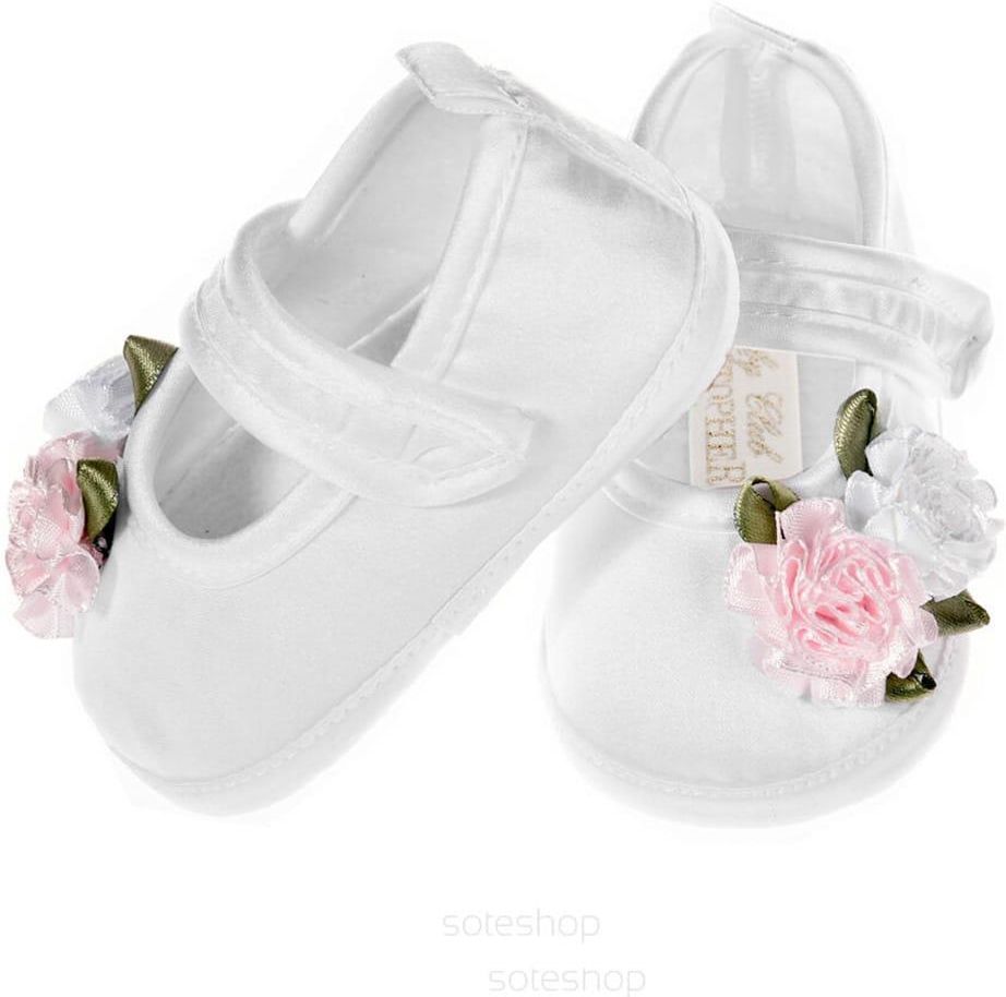 Stylowe buciki dziewczęce doskonale sprawdzą się podczas takich uroczystości jak na przykład Chrzest Święty. Model dostępny jest w kolorze białym. Baletka atłasowa zapinana na rzep z przepiękną ozdobą kwiatów. Produkt pochodzi od zaufanego polskiego producenta.