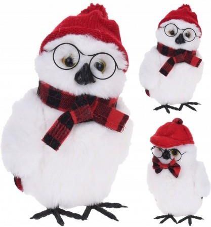 Stanowi oryginalne uzupełnienie wystroju. Dekoracja świąteczna, podkreśli wyjątkowy charakter świąt. Pięknie prezentuje się przy kominku lub choince. Ozdoba dodaje wnętrzu bożonarodzeniowego klimatu, jednocześnie czyniąc dom przytulnym i ciepłym. Produkt występuje w kilku wzorach. Wysyłany losowy wzór dostępny na magazynie. Parametry: Wysokość: 18 cm Materiał wykonania: tworzywo sztuczne Kolor: biały Motyw: Sowa Świąteczna ozdoba
