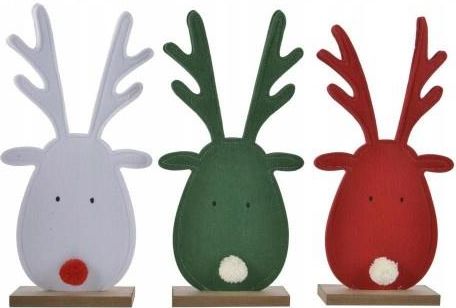Figurka świąteczna renifer Figurka świąteczna w kształcie renifera idealnie wpasuje się w świąteczny klimat. Stanowi oryginalne uzupełnienie wystroju. Dekoracja nada się jako element kompozycji lub samodzielna ozdoba. Można ustawić ją w dowolnym miejscu w mieszkaniu tak by przykuła uwagę zarówno domowników jak i gości. Wykonana z wysokiej jakości tworzywa sztucznego. Podstawa z drewna. Produkt dostępny w kilku wersjach kolorystycznych. Wydawany losowy kolor - dostępy w magazynie. Parametry: Marka: Decoris Wysokość: 32 cm Szerokość podstawy: 12,8 cm Materiał wykonania: tworzywo sztuczne, drewno Kolor: wielokolorowy