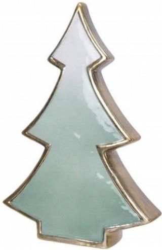 Figurka świąteczna choinka Figurka świąteczna w kształcie choinki idealnie wpasuje się w świąteczny klimat. Stanowi oryginalne uzupełnienie wystroju. Dekoracja nada się jako element kompozycji lub samodzielna ozdoba. Można ustawić ją w dowolnym miejscu w mieszkaniu tak by przykuła uwagę zarówno domowników jak i gości. Wykonana z wysokiej jakości ceramiki. Parametry Marka: Decoris Wysokość: 16,5 cm Szerokość: 13 cm Materiał wykonania: ceramika Kolor dominujący: odcienie zieleni, złoty