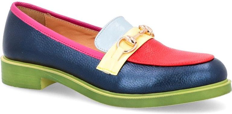 Szukasz wygodnych butów na nadchodzące wiosenne dni? Jeśli uwielbiasz zabawę kolorami i cenisz sobie oryginalność to mokasyny na kontrastowej podeszwie od TYMOTEO to propozycja wprost dla Ciebie! Cholewka została wykonana z wysokiej jakości naturalnej skóry licowej. Mokasyny wyróżniają się nie tylko elegancją lecz także detalem w postaci zielonej podeszwy, dodającej im unikalności. Lordsy mają lekką podeszwę oraz ozdobę, która sprawia urokliwy charakter obuwia. Wkładka została wykonana z naturalnej miękkiej skóry, co zdecydowanie wpływa na komfort użytkowania. Wyróżnij się w tłumie z kolorowymi mokasynami od Tymoteo! Produkty naszej marki TYMOTEO to połączenie oryginalnego wzornictwa i najwyższej jakości wykonania. W prezentowanych lordsach zastosowano nietuzinkowe połączenie kolorystyczne w odcieniach granatu, zieleni, czerwieni, fioletu oraz nutki koloru bananowego. Będą świetnym wyborem zarówno na co dzień, do pracy jak i na mniej zobowiązujące letnie przyjęcia. Efektowne, szalenie wygodne a przy tym wyjątkowo stylowe - idealne również dla fanek obuwia sportowego, poszukujących oryginalnych i nieco bardziej eleganckich butów, idealnie pasują zarówno do dżinsów jak i klasycznych spodni. Dobierz do nich torebkę a będziesz mogła cieszyć się jakością wykonania oraz kolorową stylizacją!