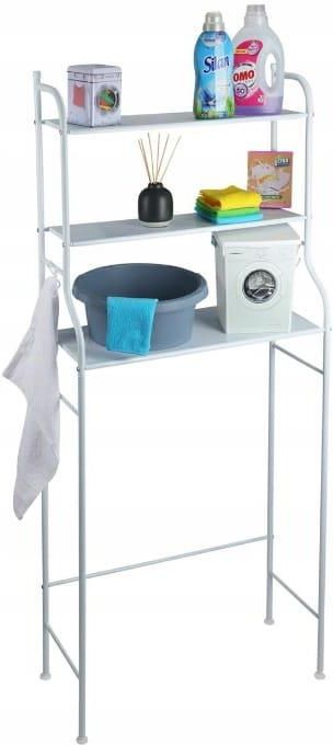 Regał łazienkowy nad pralkę 65x25x155cm Metalowy, biały, 3 półki + haczyki Koniecpol