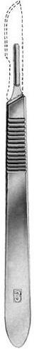 Uchwyt/Trzonek do skalpela - Wielorazowy Uchwyt do skalpela wykonany z wysokostopowej stali chirurgicznej to produkt stosowany przy zabiegach chirurgicznych oraz ambulatoryjnych. Produkt można poddawać procesowi sterylizacji i stosować wielokrotnie.Uchwyt nr 3 - 10 cm jest kompatybilny z ostrzami nr: 10, 10A, 11, 12, 14, 15, 15C, 16.Uchwyt nr 4 - 10 cm jest kompatybilny z ostrzami nr: 20, 21, 22, 22A, 23, 24, 25, 25A, 26, 27.
