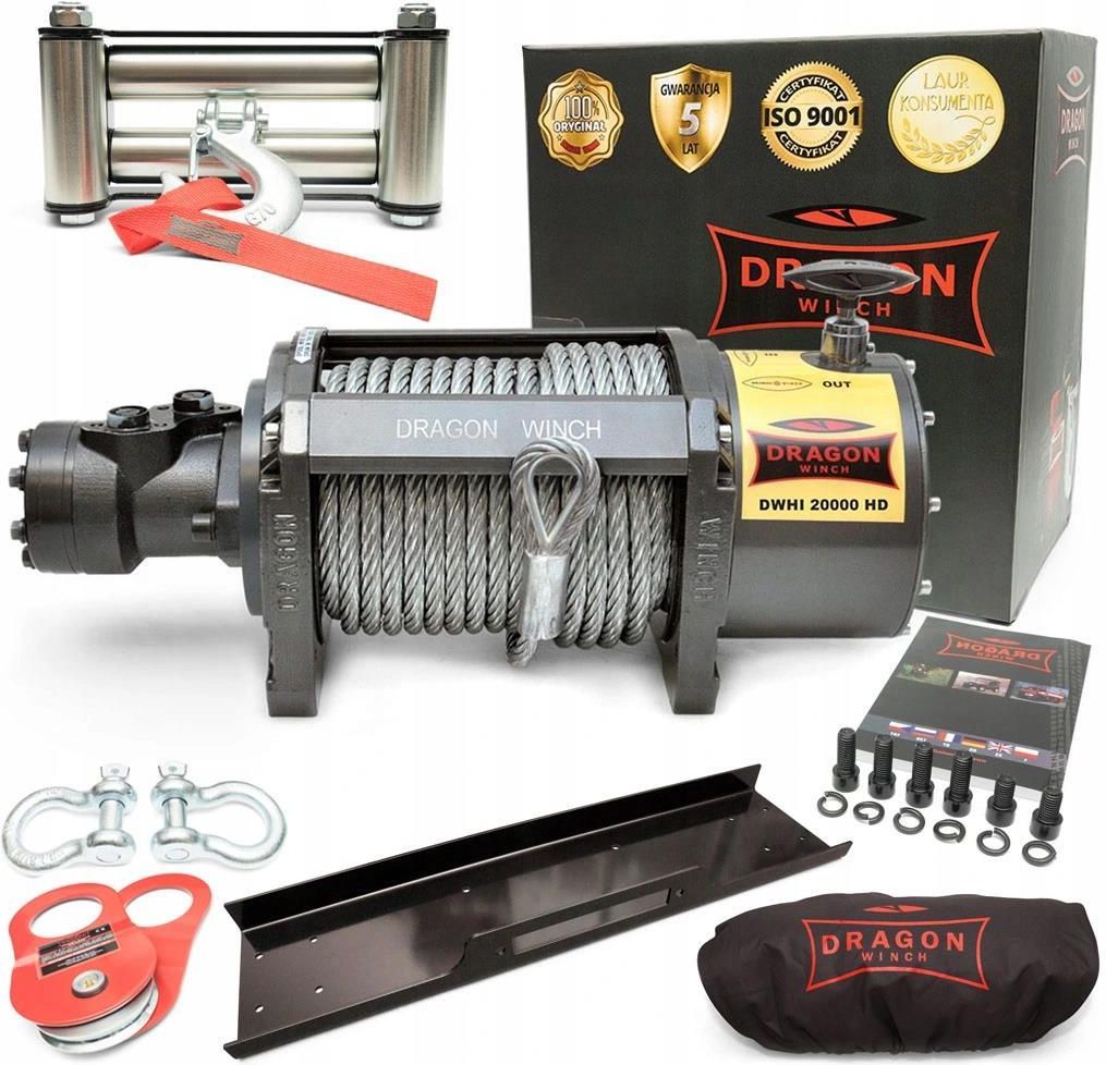 Dragon Winch DWHI 20000 HD NOWY MODEL Seria HIDRA – wytrzymałość bez granic Główne cechy wyciągarki: Uciąg 9072 kg (20000 lbs) Zasilanie hydrauliczne Maksymalne ciśnienie oleju 17,5 Mpa Maksymalny przepływ oleju 60 l/min. Długość liny 31m Przekładnia 3-stopniowa planetarna z wysokogatunkowej stali …