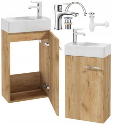Szafka łazienkowa z umywalką baterią i półsyfonem 40 wisząca dąb craft Zestaw łazienkowy to doskonałe rozwiązanie do niewielkich przestrzeni, takich jak małe łazienki, toalety gościnne czy wnęki. W skład zestawu wchodzą: szafka, ceramiczna umywalka o szerokości 40 cm, bateria, korek klik-klak oraz …