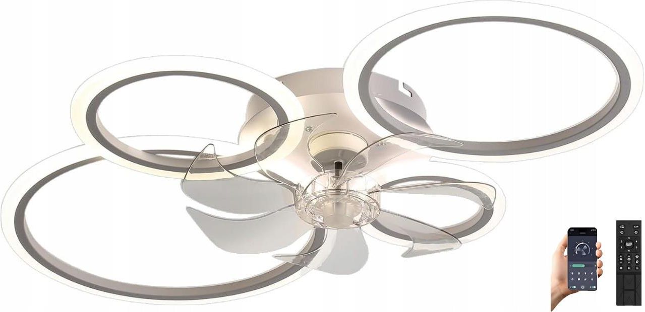 Lampa LED Sufitowa 4 X RING z wentylatorem - 80 W 2 W 1 Wentylator sufitowy / LAMPA LED WENTYLATOR to 6-stopniowa regulacja nawiewu, praca rewersyjna, funkcja czasowa. PILOT W ZESTAWIE DO ZMIANY BARWY ORAZ NATĘŻENIA ŚWIATŁA APLIKACJA - Lampą można sterować za pomocą BLUETOOTH przy użyciu aplikacji …