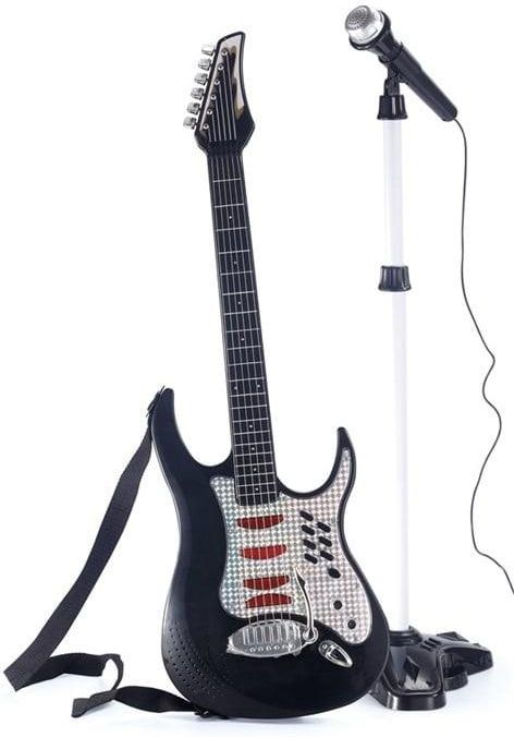 Elektryczna gitara z wieloma funkcjami, mikrofonem i regulowanym stojakiem.