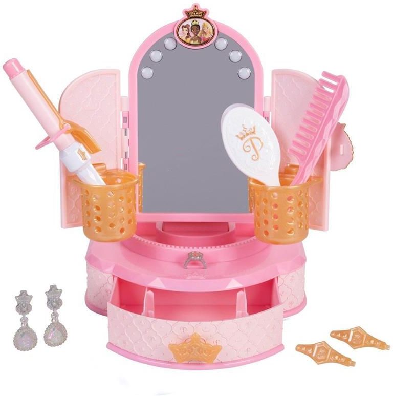 Zestaw do makijażu dla lalek Jakks Disney Princess Style Modern Makeup Mirror to niezwykły dodatek, który dodaje magii każdej kolekcji kosmetycznej. Lalki teraz mogą cieszyć się nowoczesnym lusterkiem do makijażu, które nadaje im niepowtarzalny urok. To nie tylko zwykłe lusterko – to małe arcydzieło, które przyciąga uwagę swoim nowoczesnym wzornictwem i praktycznością. Dzięki temu eleganckiemu i stylowemu lustru do makijażu lalki Disney Princess poczują się jak prawdziwe księżniczki, tworząc niezapomniane chwile zabawy i przygód.Stolik toaletowy Disney Princess Style Collection to idealny toaletowy róg dla każdej stylowej księżniczki. Jego elegancki design, kompaktowa konstrukcja oraz kompletny zestaw akcesoriów do stylizacji włosów i ozdób sprawiają, że jest niezastąpiony. Po naciśnięciu broszki z wizerunkiem księżniczki, stolik ożywa pod światłem LED, przygotowując do wieczornego wyjścia z zestawem do loków z grzebieniem, szczotką, grzebieniem i wsuwkami. Dodatkowo, miejsce na pierśc...