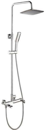 Kolumna prysznicowa z Baterią Deszczownicą natynkowa ALEA Chrom PAE_00KB Kolumna prysznicowa Laveo Alea to połączenie nowoczesnego designu i praktycznych rozwiązań. Stylowe wykończenie chromowane idealnie wpasuje się w każdą aranżację – od klasycznej po nowoczesną. Najważniejsze cechy produktu Kolumna natryskowa z baterią i słuchawką w wykończeniu chromowanym Słuchawka z 1 funkcją strumienia (deszczowa), z regulowanym kątem nachylenia i ruchomym uchwytem. System antykamień – łatwe czyszczenie słuchawki i deszczownicy (ściereczką, gąbką lub palcami). Bateria z ruchomą, chowaną wylewką – więcej miejsca i bezpieczeństwo podczas korzystania z prysznica. Wąż 150 cm z systemem antyskręt – bez plątania. Regulowany rozstaw mocowań – dopasujesz do swojej instalacji. Regulacja wysokości deszczownicy – komfort dla wszystkich domowników. Produkty przechowywane są w nowoczesnym, suchym magazynie i przechodzą kontrolę jakości. Parametry techniczne Wysokość: 913-1306 mm Szerokość: 270 mm Głębokość całkowita: 445 cm Sposób montażu: ścienny Ilość strumieni słuchawki: 1 Strumienie słuchawki: Deszczowy Wymiar słuchawki: 243 x 57 mm Długość węża: 150 cm Materiał wykonania węża: guma w oplocie stalowym Regulowany rozstaw mocowań: Tak Długość drążka: 913 - 1306 mm Wymiar deszczowni: 253 x 186 mm Strumienie górnej deszczowni: 1 Materiał wykonania górnej deszczowni: ABS Bateria w zestawie: tak Wykończenie: chrom Materiał wykonania zestawu: Plastik Stal Mosiądz Dlaczego warto wybrać Alea PAE 00KB? Kolumna Alea to idealne rozwiązanie dla wymagających użytkowników. Stylowe wykończenie biało-chrom pasuje do każdej łazienki, a regulowana deszczownica i ruchoma wylewka zapewniają wygodę dla całej rodziny. Dzięki systemowi antykamień i antyskręt zestaw jest łatwy w czyszczeniu i trwały przez lata. Montaż i pielęgnacja ⚙️Montaż: natynkowy – prosty, a dla pełnej pewności rekomendowany montaż przez instalatora. ✨Czyszczenie: silikonowe wypustki w słuchawce i deszczownicy pozwalają szybko usunąć osad z kamienia – wystarczy przetrzeć palcami lub miękką ściereczką.