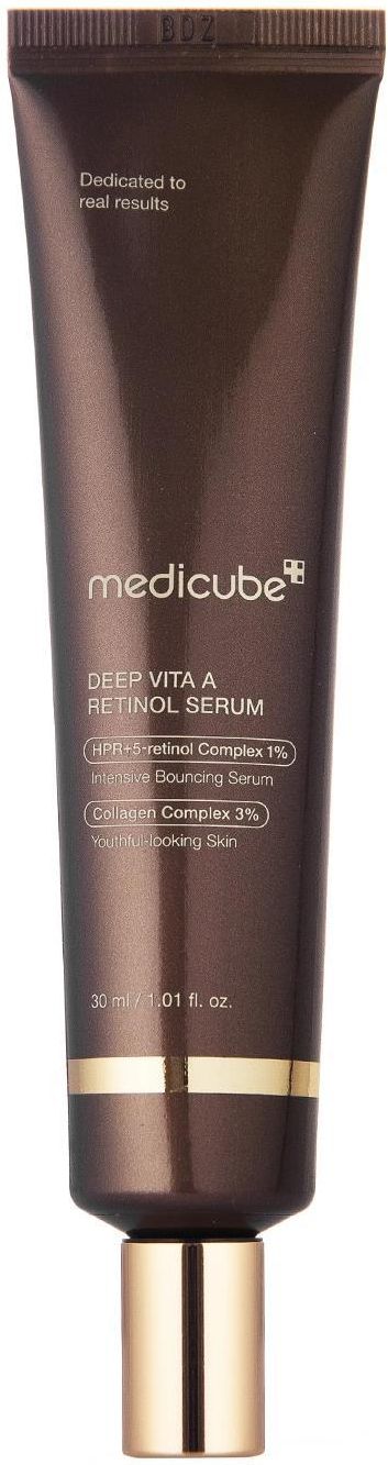 MEDICUBE Deep Vita A Retinol Serum 30ml MEDICUBE Deep Vita A Retinol Serum to zaawansowane serum przeciwstarzeniowe, które wykorzystuje moc retinolu (witamina A) do redukcji zmarszczek, poprawy elastyczności skóry i wyrównania jej kolorytu. Formuła serum zawiera również składniki nawilżające i łagodzące, które minimalizują podrażnienia związane z retinolem, pozostawiając skórę gładką, promienną i pełną blasku. Idealne dla osób poszukujących intensywnej regeneracji i odmłodzenia skóry. Kluczowe składniki aktywne Retinol (witamina A): Stymuluje odnowę komórkową, redukuje zmarszczki i poprawia gęstość skóry. Kwas hialuronowy: Intensywnie nawilża, wypełniając zmarszczki i poprawiając nawodnienie skóry. Niacynamid (witamina B3): Redukuje zaczerwienienia, wyrównuje koloryt skóry i wzmacnia jej barierę ochronną. Ekstrakt z aloesu: Działa kojąco i przeciwzapalnie, łagodząc podrażnienia. Działanie produktu Serum Deep Vita A Retinol działa wielokierunkowo: redukuje zmarszczki, poprawia elastyczność skóry, wyrównuje koloryt i intensywnie nawilża. Dzięki zawartości retinolu, skóra staje się bardziej gładka i jędrna, a kwas hialuronowy i niacynamid zapewniają głębokie nawilżenie oraz łagodzenie podrażnień. Typy skóry do jakich jest rekomendowany Skóra dojrzała z widocznymi oznakami starzenia Skóra sucha i odwodnionaSkóra z przebarwieniami i nierównym kolorytem Skóra wymagająca intensywnej regeneracji Sposób aplikacji Nałożyć niewielką ilość serum na oczyszczoną skórę twarzy, szyi i dekoltu, delikatnie wklepując opuszkami palców. Stosować wieczorem jako część rutyny pielęgnacyjnej, zaczynając od 2-3 razy w tygodniu, aby przyzwyczaić skórę do retinolu. Przed użyciem zaleca się nałożenie kremu nawilżającego, aby zminimalizować podrażnienia.