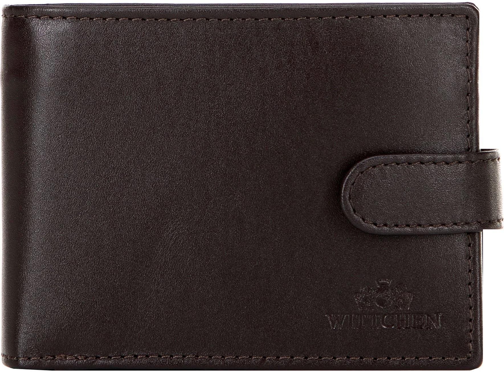 Portfel ze skóry z zapięciem na napę brązowy Konin
