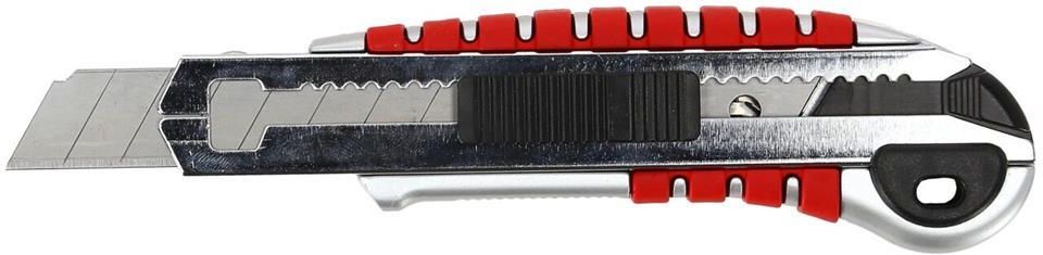 Nóż z ostrzem wysuwanym łamanym ze stali SK5, uniwersalnego zastosowania Korpus wykonany z tworzywa ABS i gumy TPR Magazynek na 5 zapasowych ostrzy Automatyczne ładowanie następnego ostrza Pliki: 30036.pdf Parametry: Średnica: 18 mm Marka: PROLINE Gwarancja: -