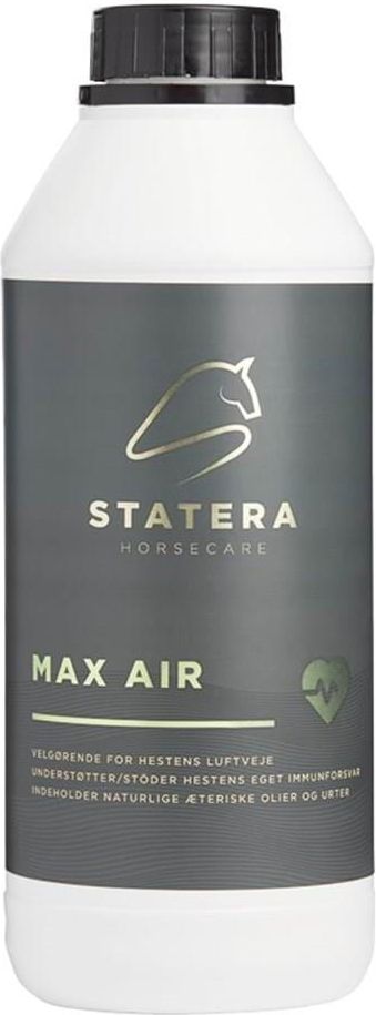 STATERA Max Air zawiera korzystne połączenie olejków eterycznych, które wraz z czerwonym kapeluszem przeciwsłonecznym, korą cynamonu i eukaliptusem dbają o drogi oddechowe konia i zapewniają maksymalny dopływ powietrza. Unikalna kompozycja ziół i witamin pomaga również wspierać układ odpornościowy i zapewniać ogólne dobre samopoczucie konia. STATERA Max Air jest idealny do stosowania w zimnych i wilgotnych okresach, gdy koń często przebywa w stajni lub w innych okresach, w których dodatkowa pielęgnacja dróg oddechowych jest korzystna.