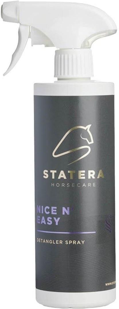 Przyjemny i skuteczny spray do rozczesywania końskiej grzywy i ogona. STATERA Nice n' Easy zapewnia skuteczny efekt rozczesywania, jednocześnie nadając grzywie i ogonowi konia przyjemny i luksusowy połysk. Może być stosowany zarówno na suchą, jak i mokrą grzywę i ogon. Odżywia i zmiękcza bez przetłuszczania i pozostawia włosy miękkie, gładkie i błyszczące. Przyczynia się do utrzymania grzywy i ogona wolnych od błota i brudu.