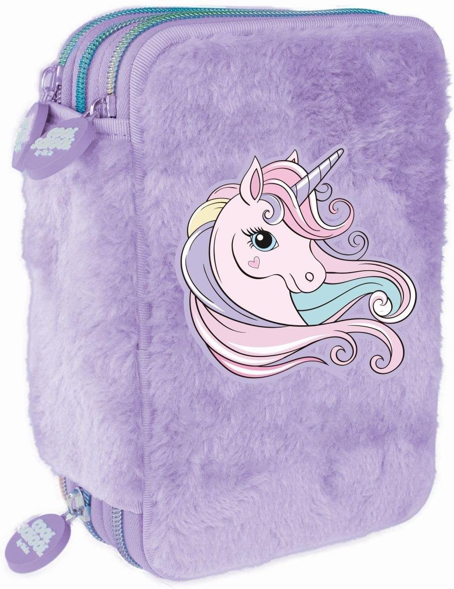 The triple pencil case from Tinka is packed with everything you need for everyday life at school. The pencil has 3 large compartments consisting of, among other things, markers, pencils, ruler, scissors and eraser. The pencil has purple, soft fur and a unicorn motif.