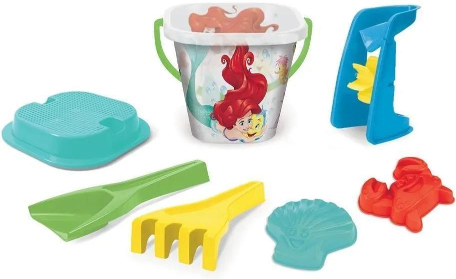 Seria licencyjnych produktów Walta Disney'a - Księżniczki. Zabawka wyprodukowana w Polsce. 7mio elementowy komplet letni. Nadruk popularnych bohaterów bajek Disneya, został wykonany przy użyciu technologii IML (In Mould Label), gdzie zastosowana grafika jest wtopiona bezpośrednio w tworzywo, będąc …