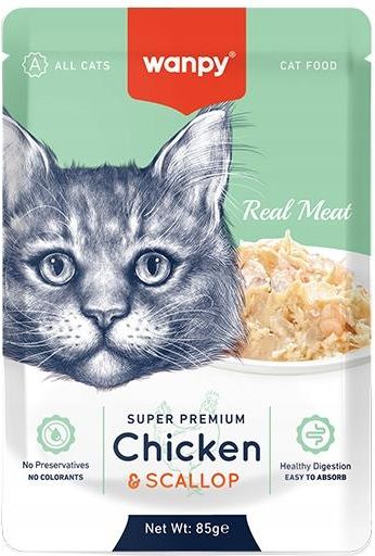 Wanpy - Retort pouch Chicken & Scallop - WP88003/WK Wanpy - Retort Pouch Chicken & Scallop - Kurczak i Przegrzebki Wanpy Retort Pouch Chicken & Scallop to delikatna saszetka, która łączy smakowite mięso kurczaka z luksusowymi przegrzebkami, oferując Twojemu kotu wyjątkowy posiłek. Ta …