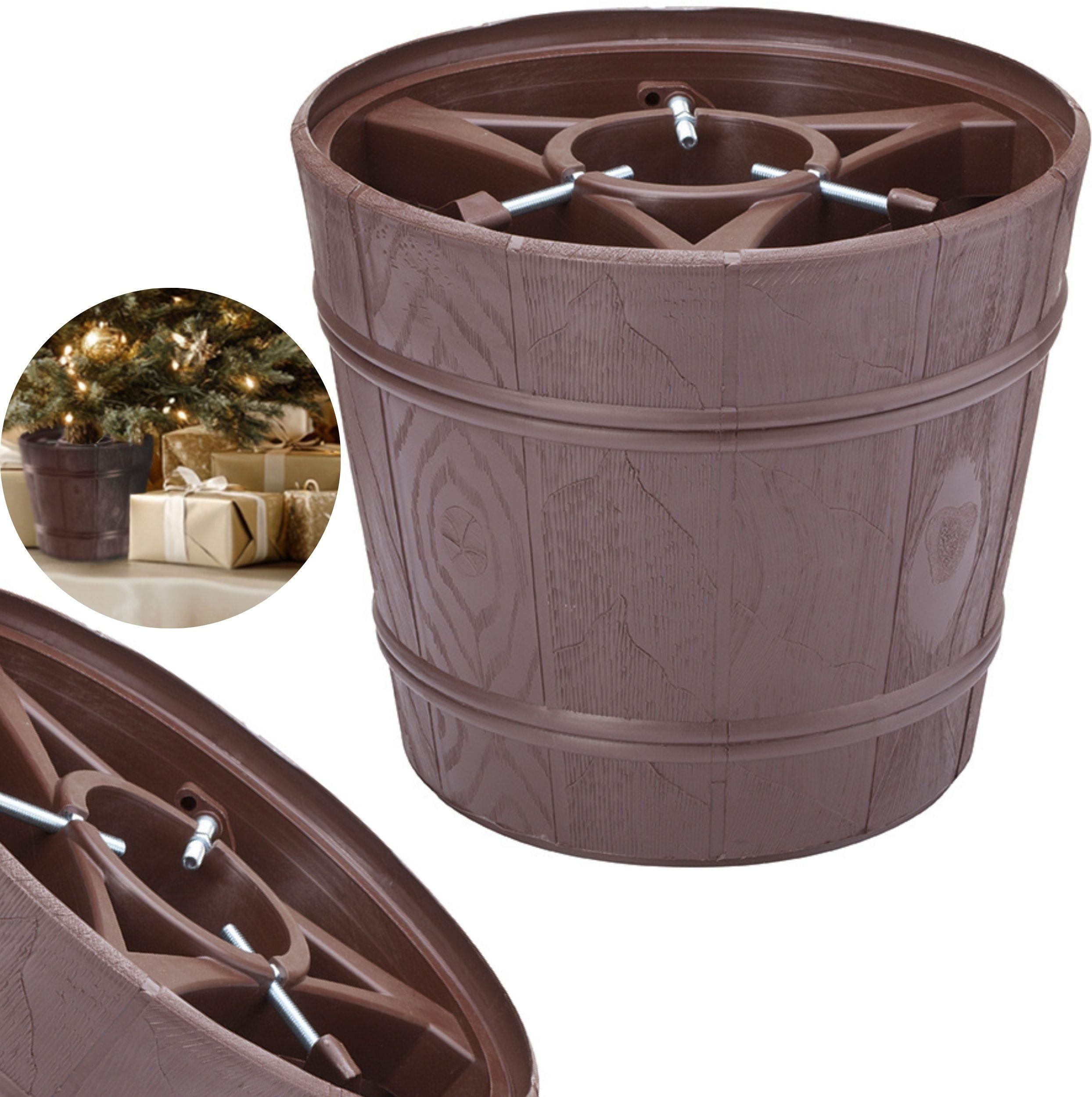 Stojak pod choinkę Duży stojak na drzewko do 2,5m Brązowy Stojak choinkowy to solidny i niezawodny produkt, który idealnie sprawdzi się do stabilnego osadzenia choinek o wysokości do 2,5 metra. Dzięki swojej wytrzymałej konstrukcji i dużej stabilności, gwarantuje bezpieczeństwo i estetykę Twojej świątecznej dekoracji. W skład zestawu wchodzi Stojak pod choinkę Bezpieczny i Stabilny Stojak Choinkowy Nasz stojak choinkowy w kształcie wiadra/doniczki to idealne rozwiązanie dla Twojej choinki. Wykonany z wysokiej jakości tworzywa sztucznego, zapewnia nie tylko estetyczny wygląd, ale przede wszystkim bezpieczeństwo i stabilność. Zadbaj o bezpieczeństwo swojej rodziny i piękno świątecznego drzewka z naszym stojakiem choinkowym! Kluczowe cechy: Bezpieczeństwo dla dzieci: Dzięki przemyślanej konstrukcji, stojak jest bezpieczny i nie zagraża przewróceniem się na dzieci. Solidna konstrukcja: Wykonany z wytrzymałego tworzywa sztucznego, gwarantuje długotrwałe użytkowanie. Stabilna podstawa: Średnica podstawy wynosząca 22 cm zapewnia doskonałą stabilność, minimalizując ryzyko przewrócenia się choinki. Parametry produktu Średnica: 22-29,5cm Wysokość: 25,5 cm Szerokość pnia: 9 cm Maksymalna wysokość choinki: 2,5 m Pojemność: 11l Możliwość podlewania Materiał wykonania: tworzywo sztuczne / plastik Informacje dodatkowe Solidnie wykonany i z trwałego tworzywa 2w1 stojak i doniczka Stabilnie utrzymuje drzewko Dwa mocne uchwyty Łatwe podlewanie Funkcjonalna Faktura drewna, która wpasuje się w każde wnętrze