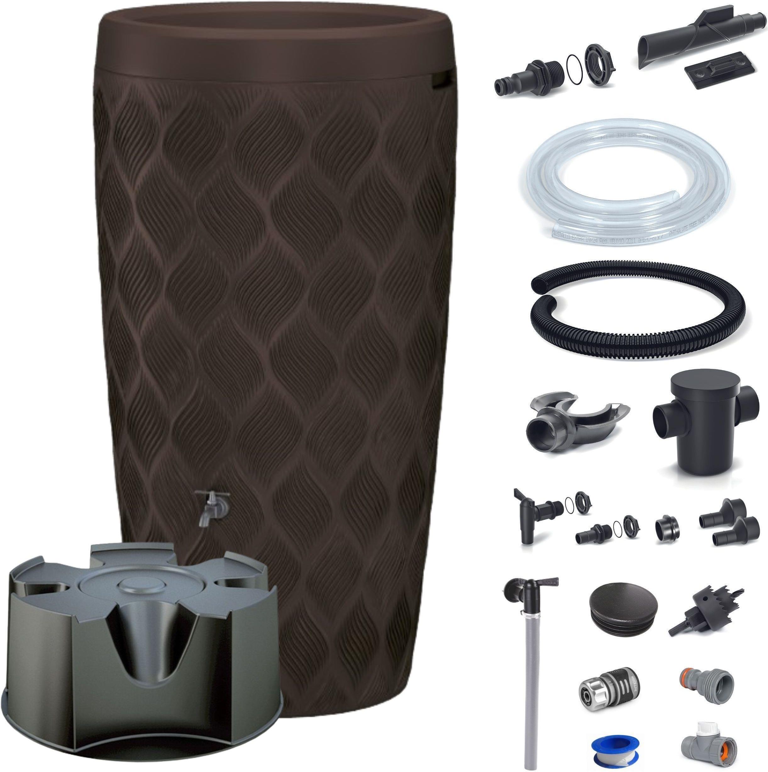 Zbiornik Flow 240l + przyłącza, podstawa - Brązowy W skład zestawu wchodzi: Zbiornik na deszczówkę Flow 240l x1 Opaska nierdzewna 16-27mm x1 Rurka do kranu 3/4" do zbiornika na wodę deszczową x1 Szybkozłączka 1/2" standard TPR White-Line Bradas x1 Wkrętka do urz. zrasz. GZ3/4" White-Line Bradas x1 …